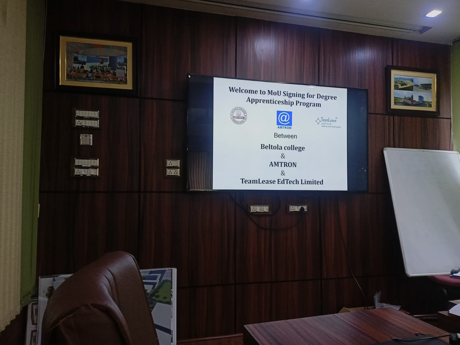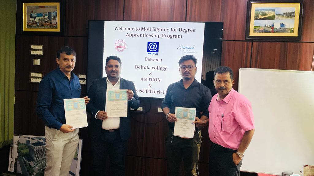 A MOU signing for Degree Apprenticeship programme between Beltola College and Amtron and Teamlease EdTech Limited on 25th August, 2023 in the Amtron Campus.